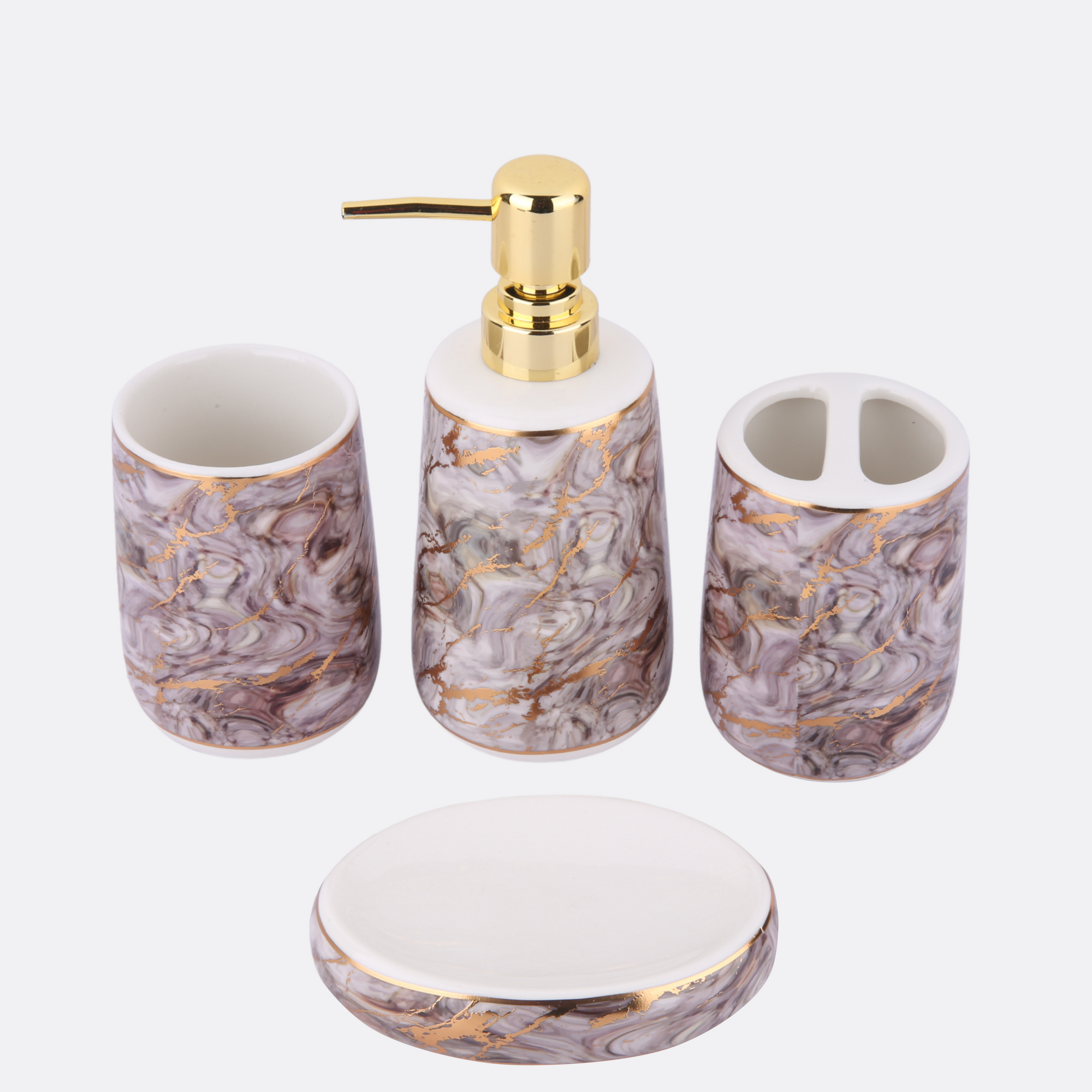 - 1 Soap Dispenser, 1 Tumbler, 1 Soap Dish, 1 Brush Holder