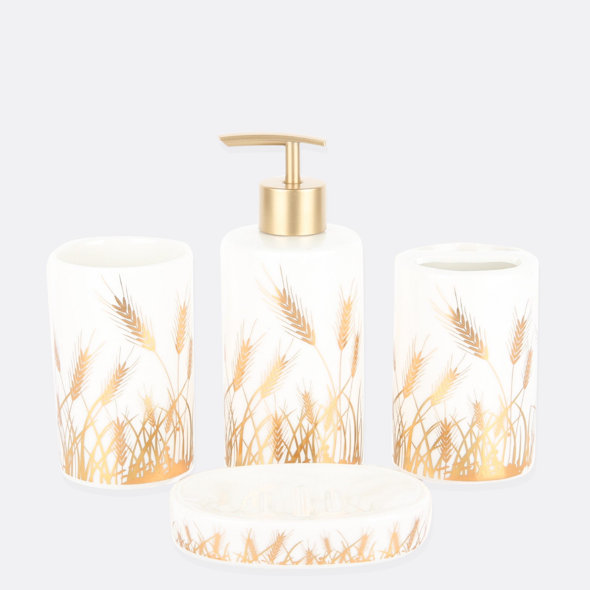 - 1 Soap Dispenser, 1 Tumbler, 1 Soap Dish, 1 Brush Holder