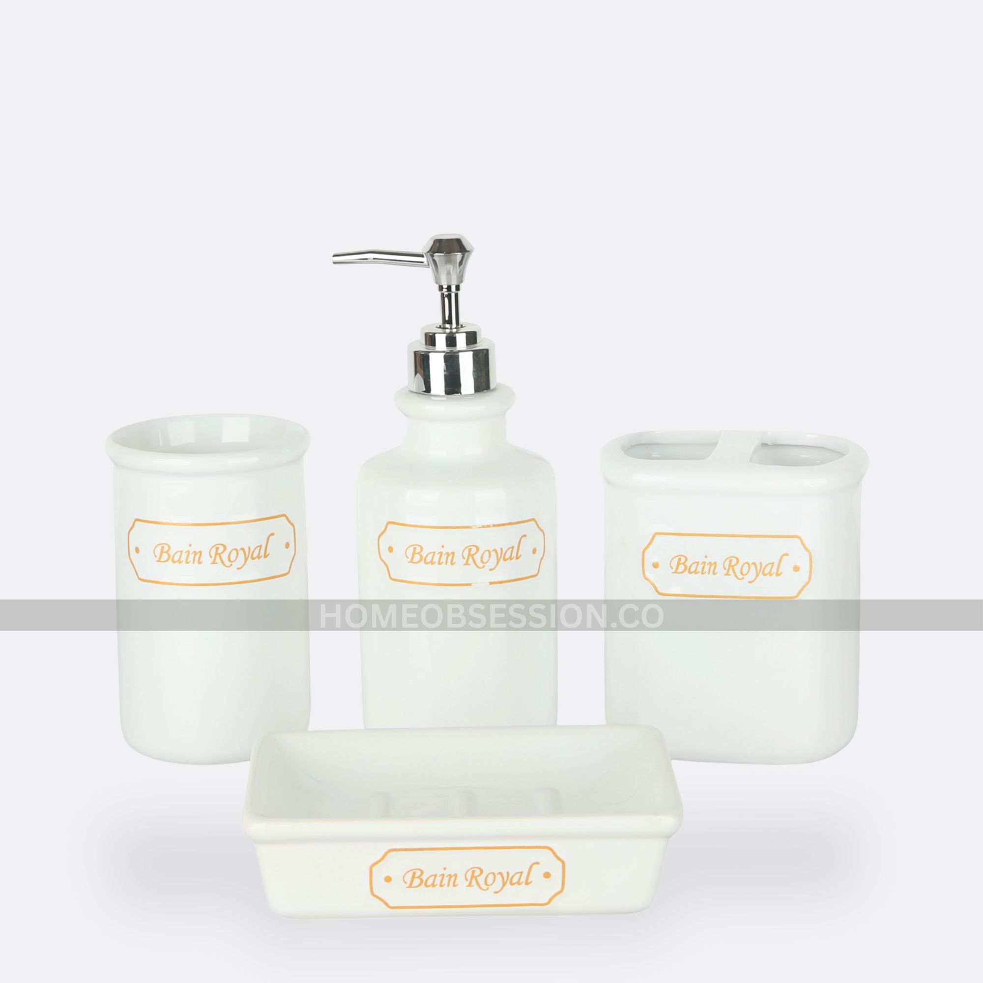 - 1 Soap Dispenser, 1 Tumbler, 1 Soap Dish, 1 Brush Holder
