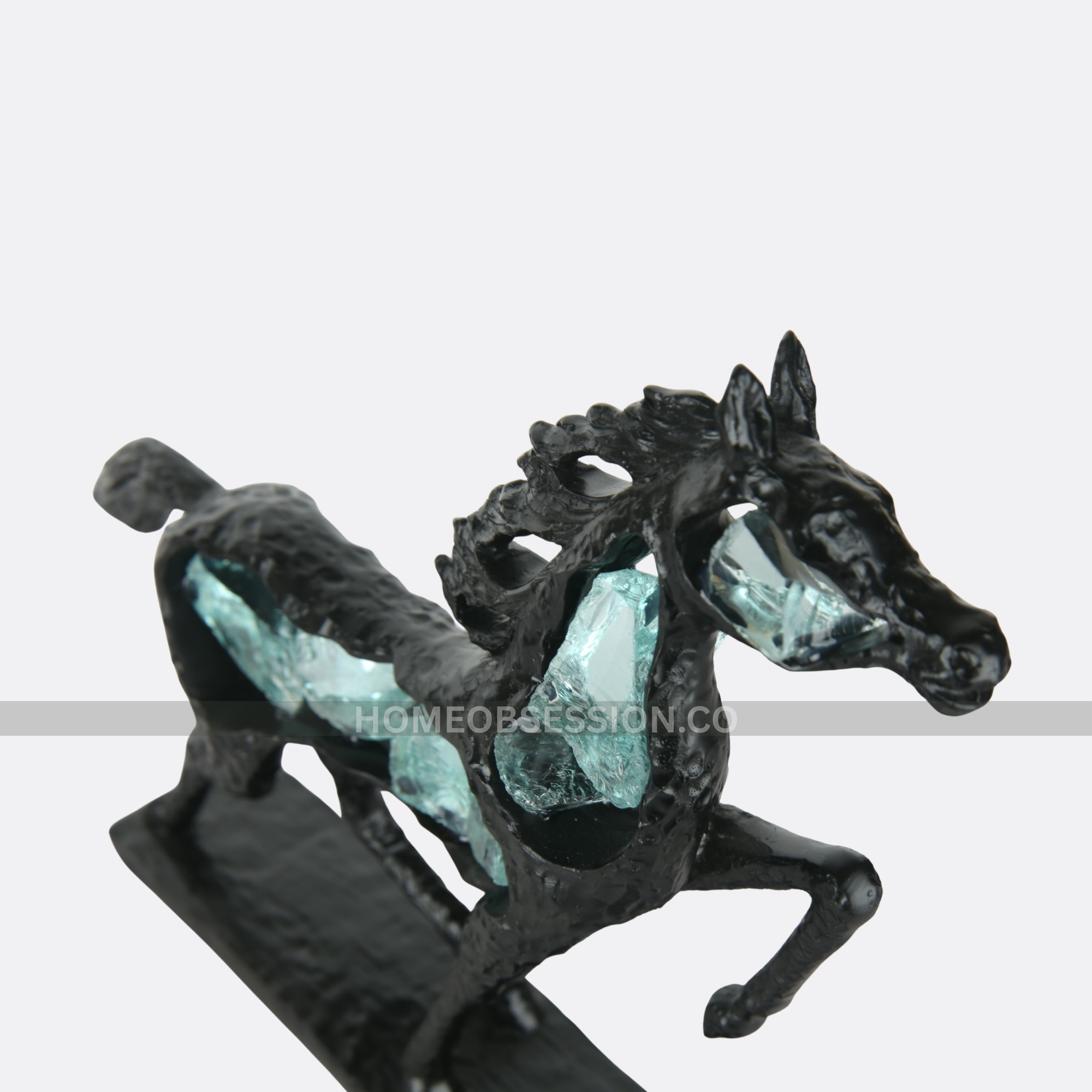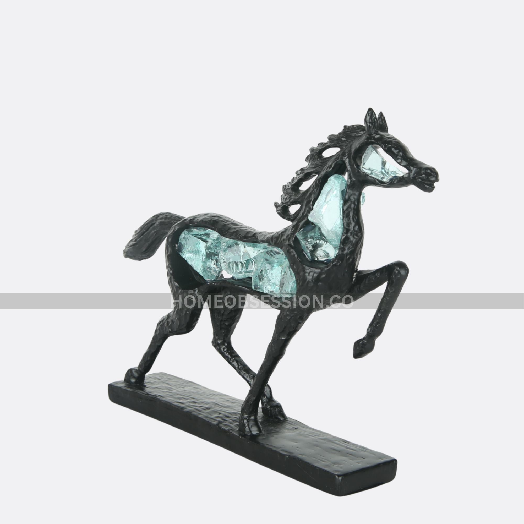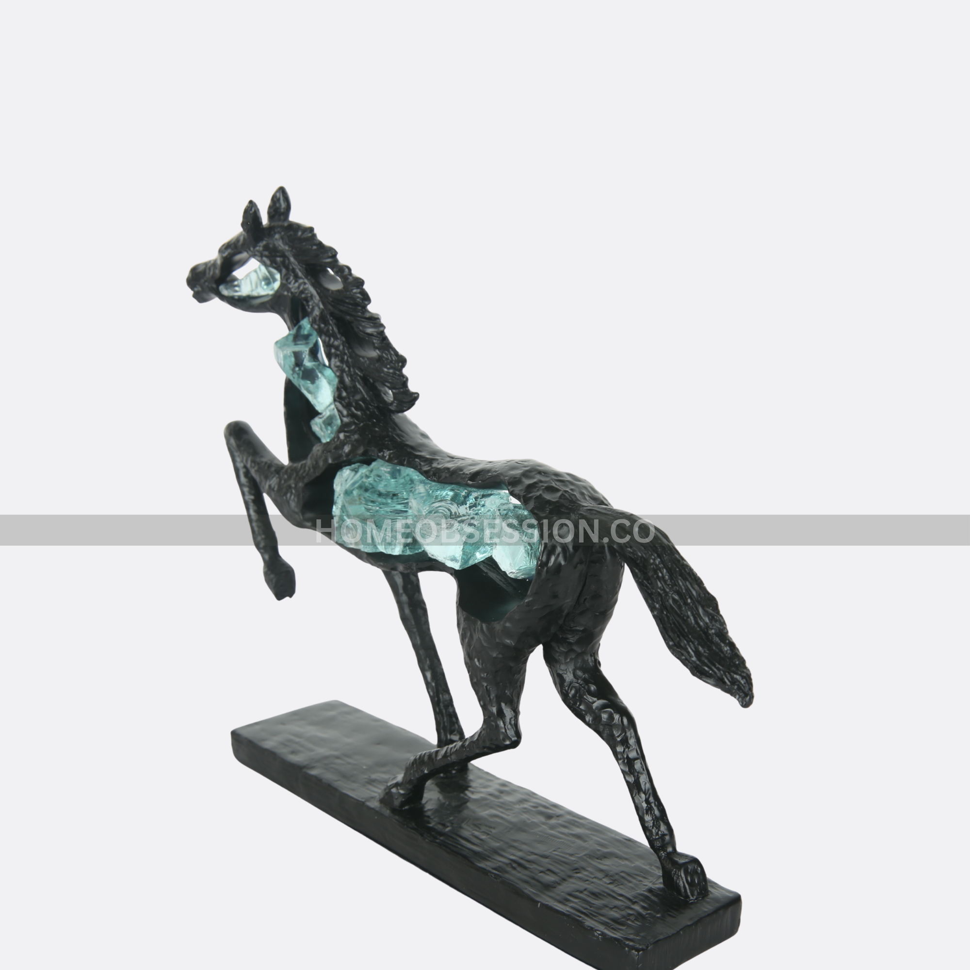 - Crystal Stallion is a striking luxury horse sculpture that symbolizes strength, freedom, and motion. Crafted in a bold black finish and enhanced with shimmering blue crystal detailing, this contemporary art piece brings power, elegance, and visual depth to modern interiors.