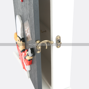 - Easy to install and use, our wooden key holder with an openable door brings both functionality and decorative appeal to your home. Its compact size fits perfectly in any entryway, hallway, or kitchen, keeping your keys organized and easily accessible.