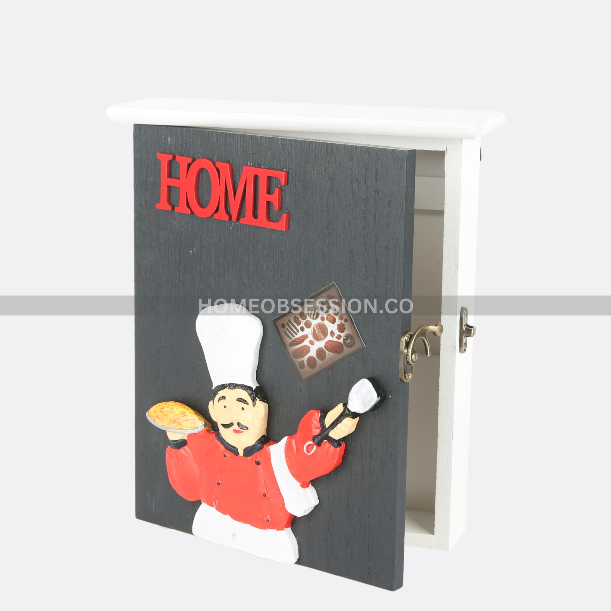 - he openable door design adds a unique twist, allowing you to easily access your keys while keeping them securely stored. No more fumbling around or misplacing keys – simply open the door to reveal the hooks inside, providing a designated spot for each key.