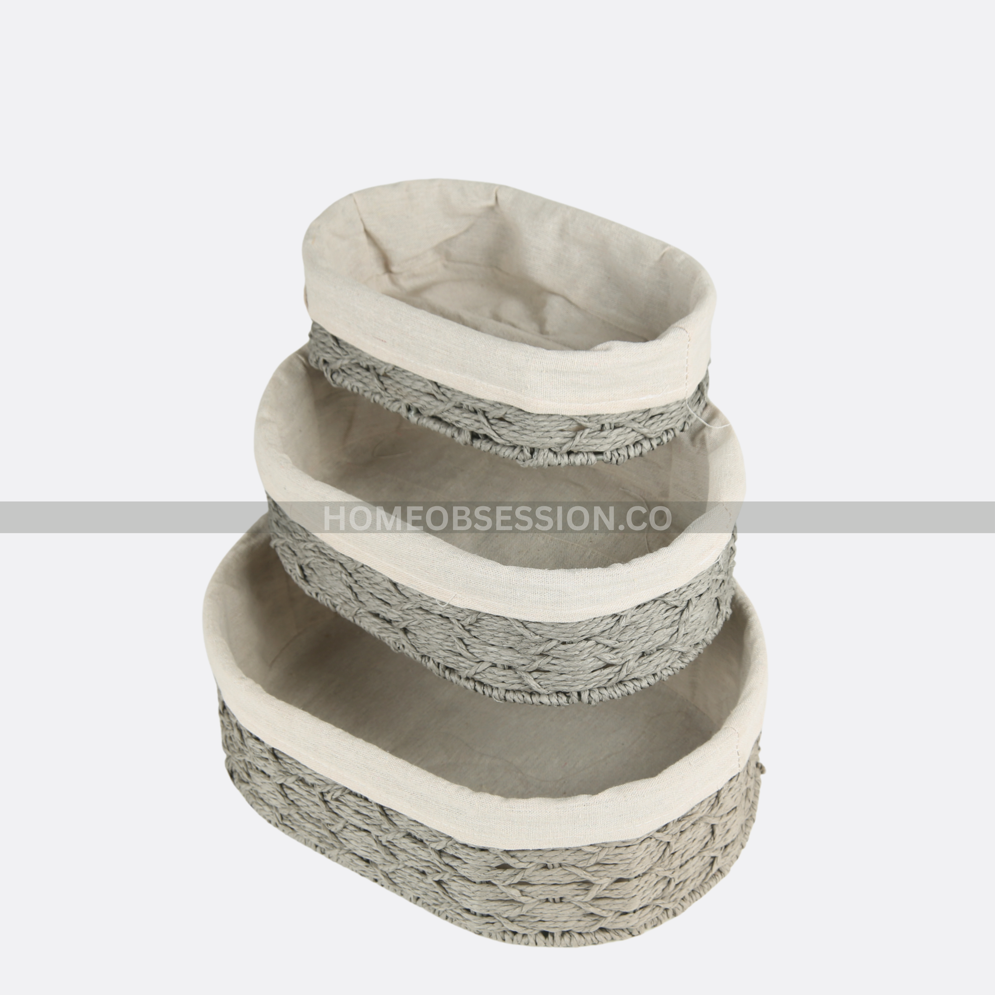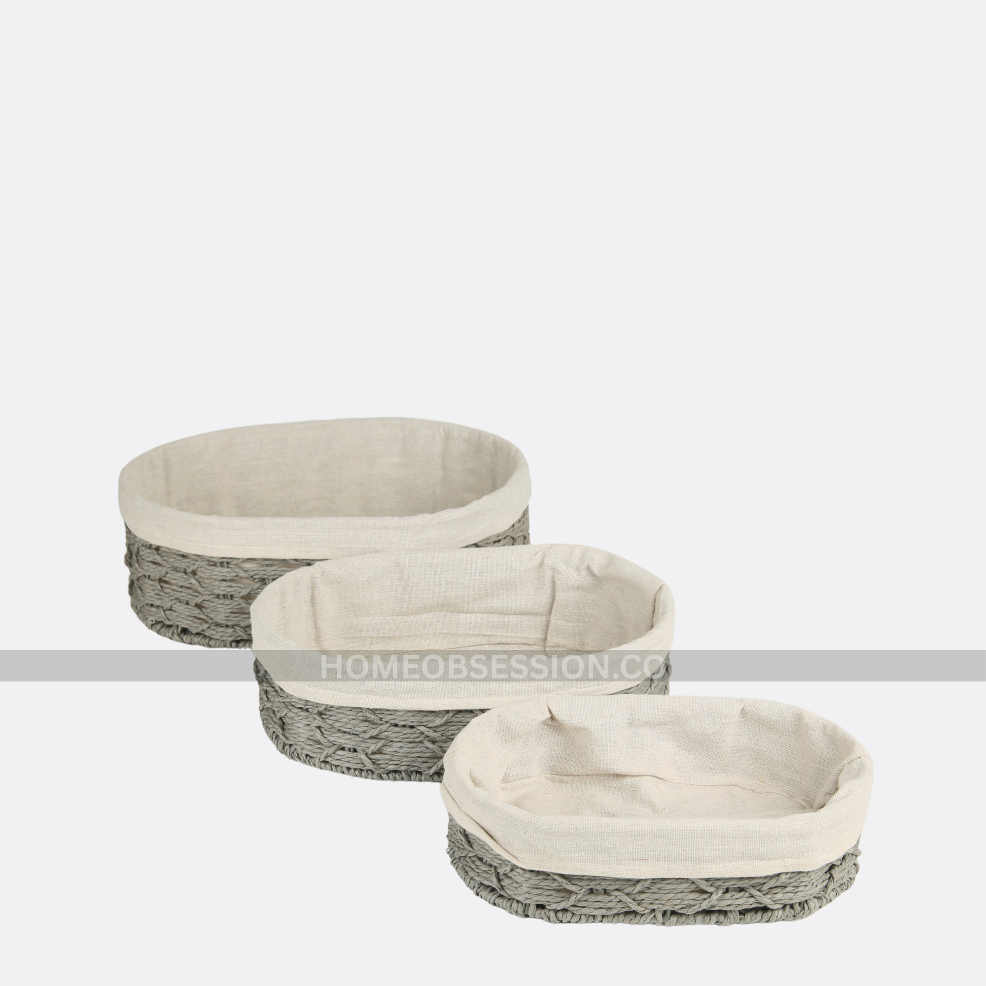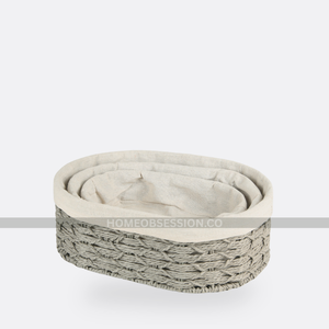 Jute Oblong Baskets With Cloth Lining ( Set Of 3 )