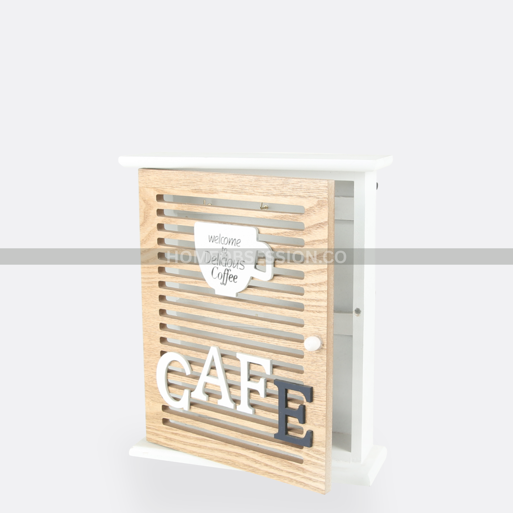 - Stay organized and add a touch of rustic charm to your entryway with our wooden key holder featuring an openable door. Crafted with high-quality wood, this key holder offers a functional and stylish solution for keeping your keys in one place.