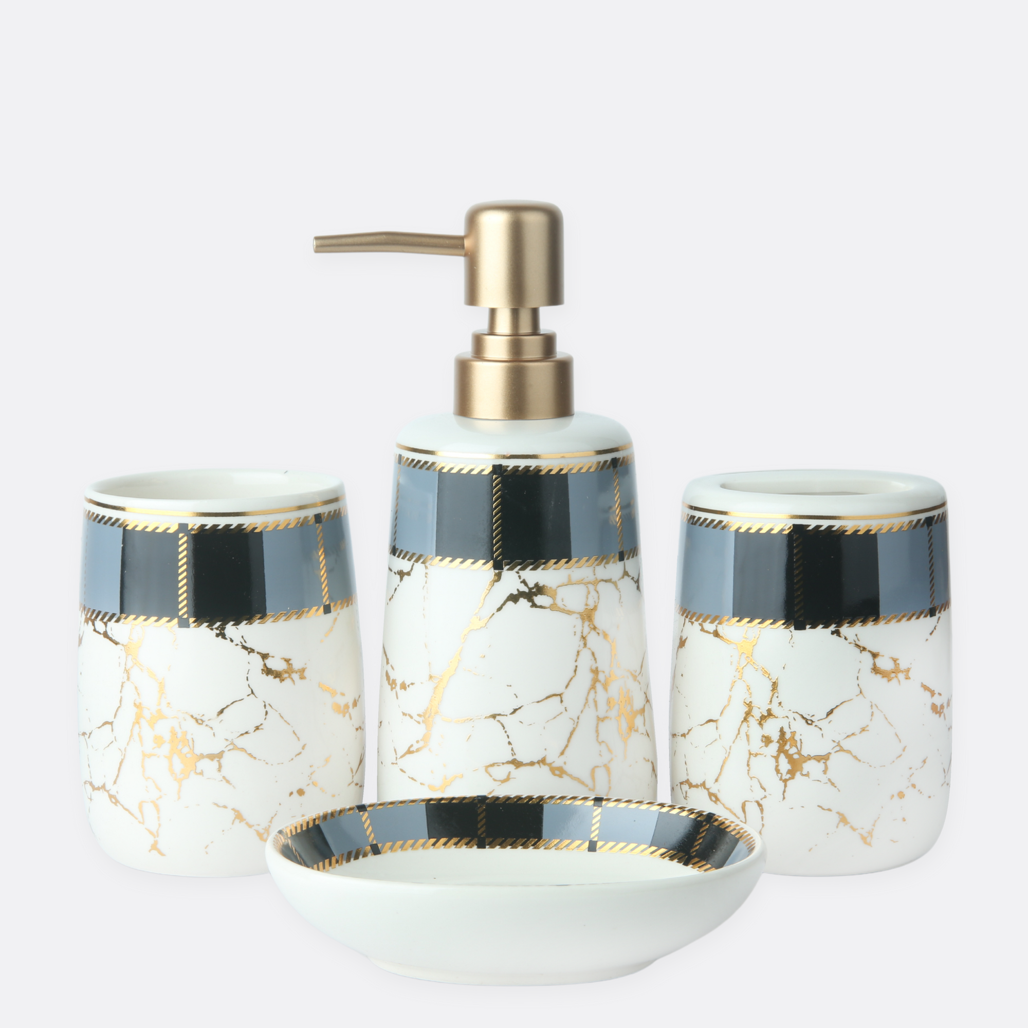 - 1 Soap Dispenser, 1 Tumbler, 1 Soap Dish, 1 Brush Holder