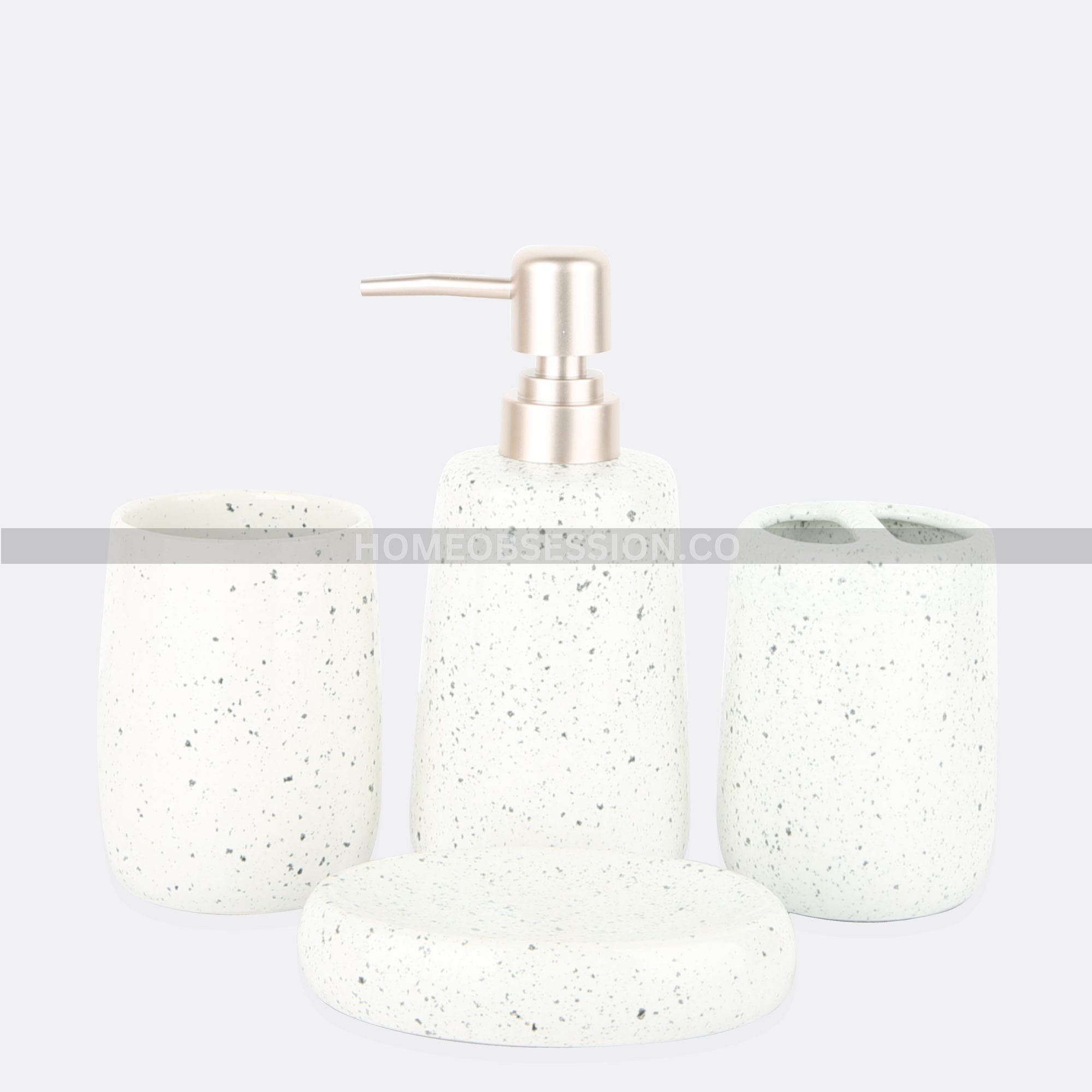 - 1 Soap Dispenser, 1 Tumbler, 1 Soap Dish, 1 Brush Holder
